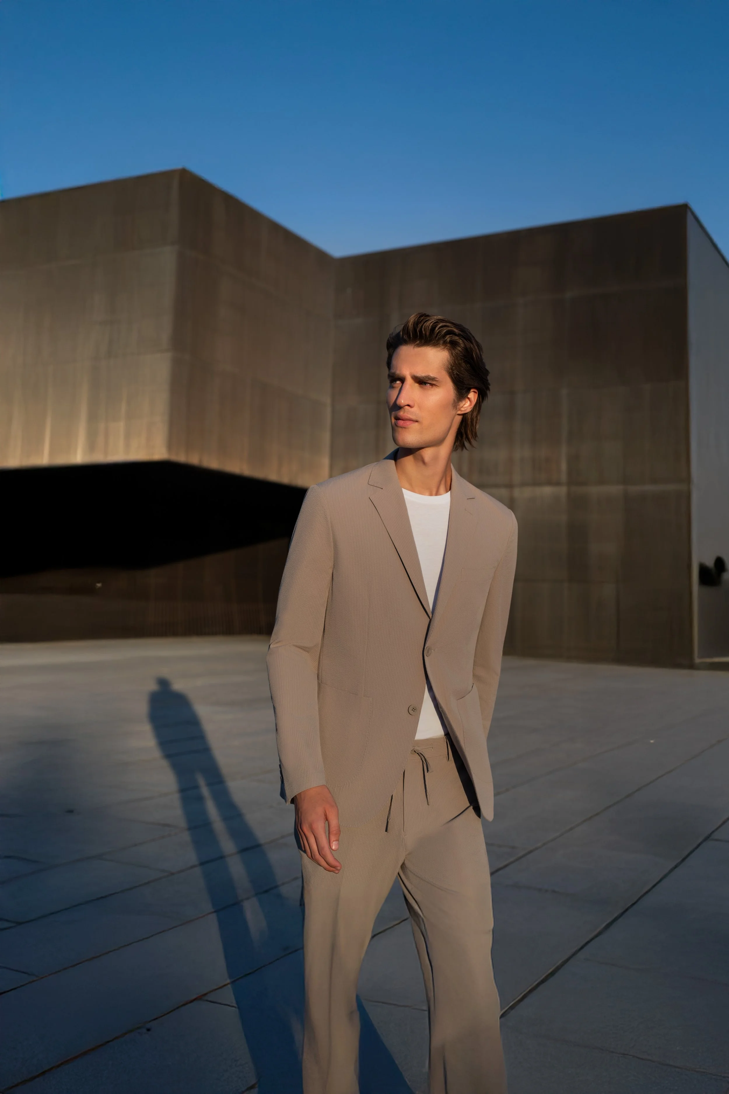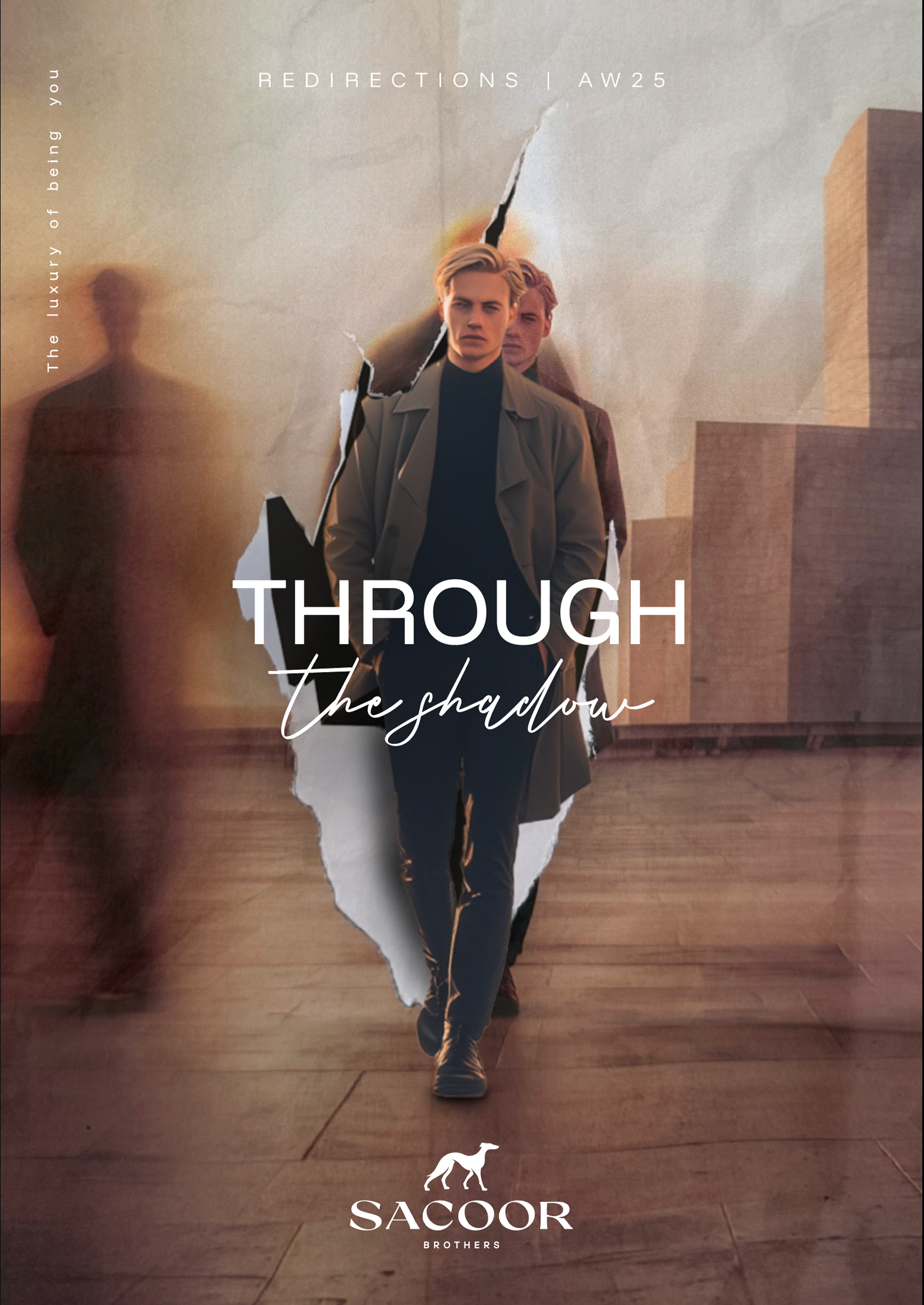 Visually, the protagonist embodies this sense of certainty: walks forward with determination, looking ahead, fully aware of his destination, wearing the Sacoor collection. Around him, the motion-blurred figures created through long exposure symbolize those who are still searching for meaning.